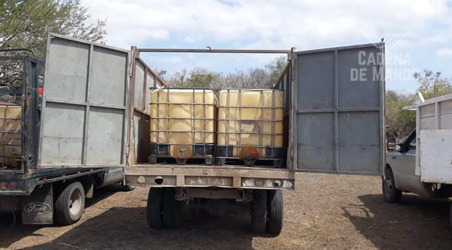 Los aseguramientos se realizaron el pasado 8 de marzo en una acción interinstitucional donde en un primer domicilio se encontró un tanque cisterna enterrado con aproximadamente 29 mil litros de hidrocarburo, así como 15 cubitanques vacíos con capacidad de mil litros cada uno, un semiremolque y tres camionetas tipo Pick Up.